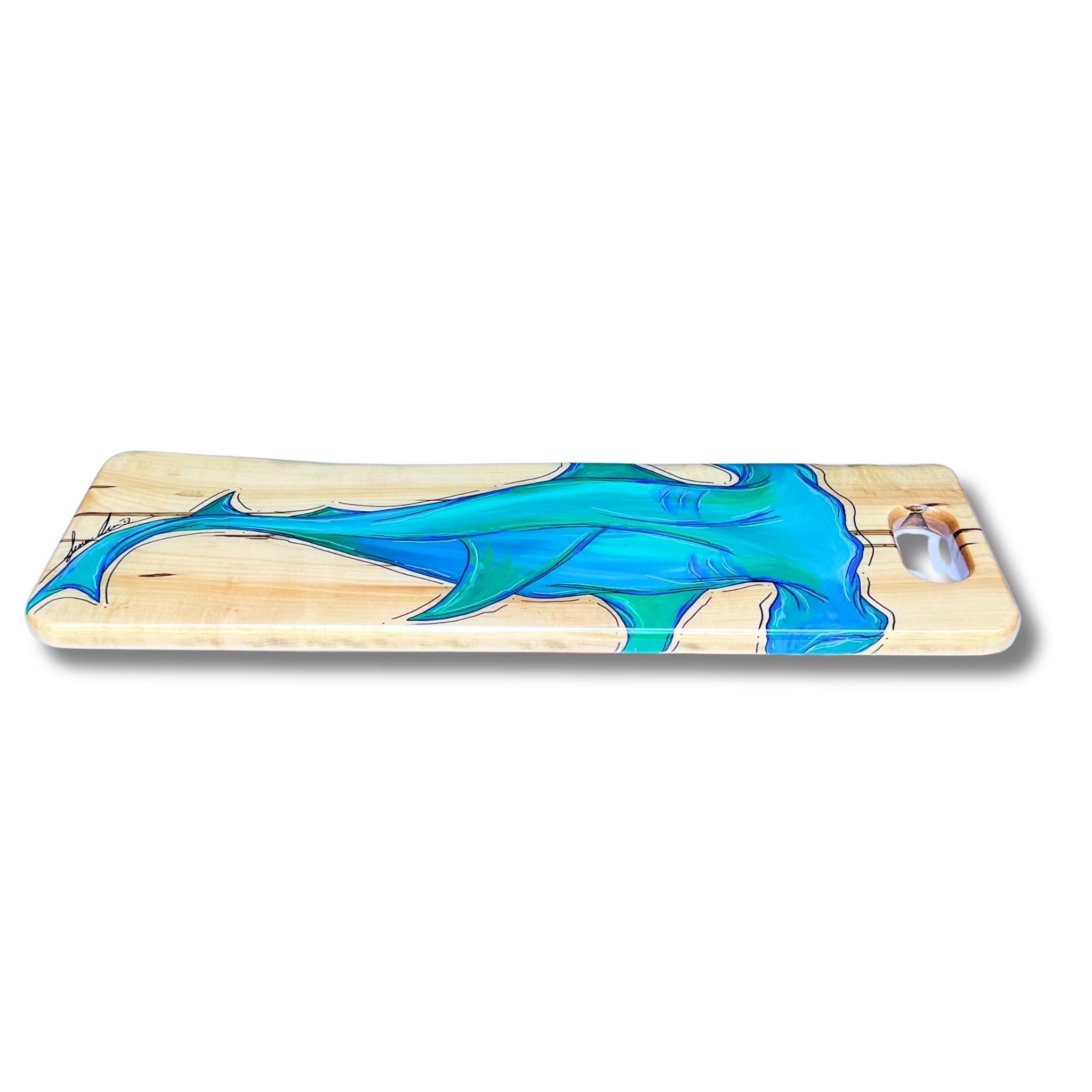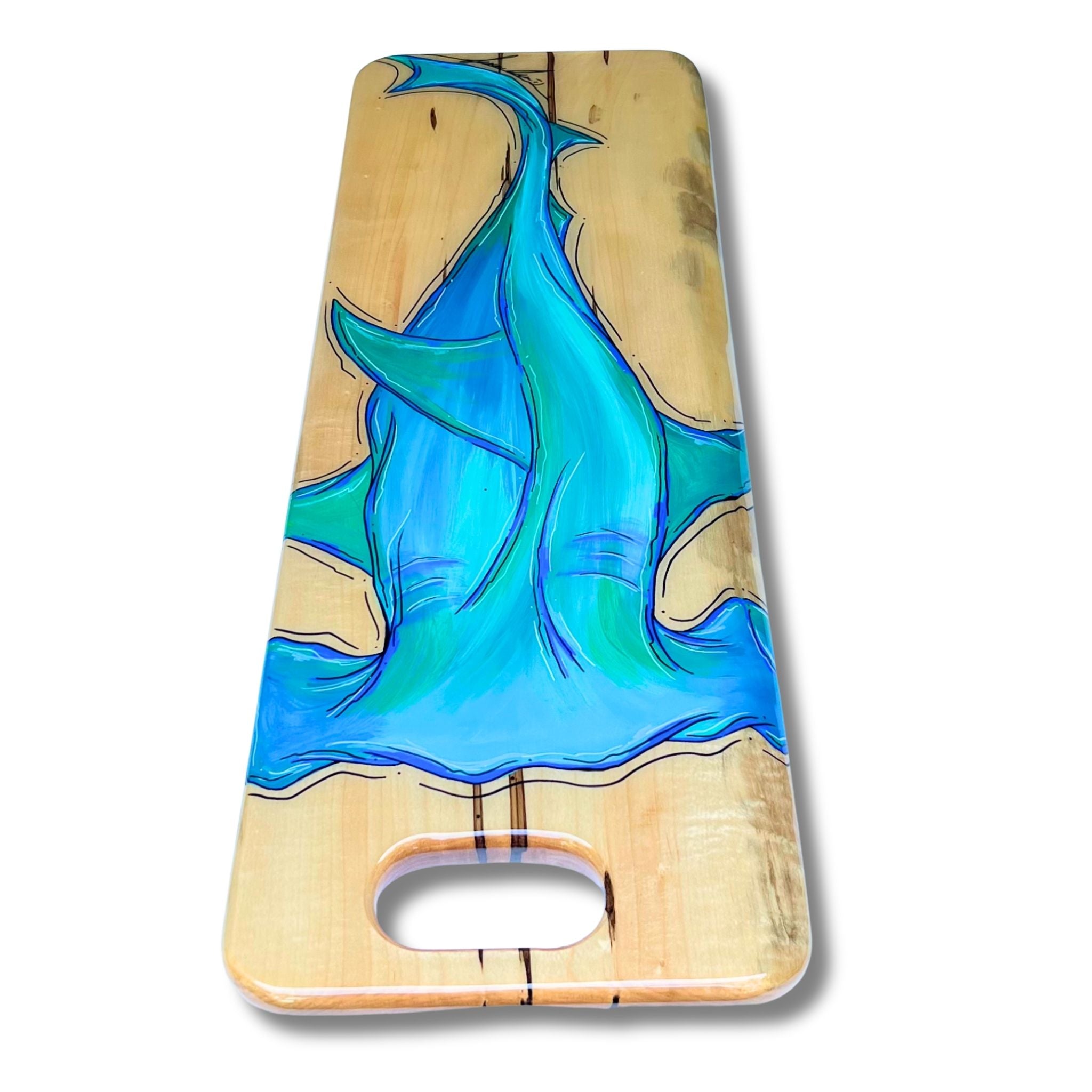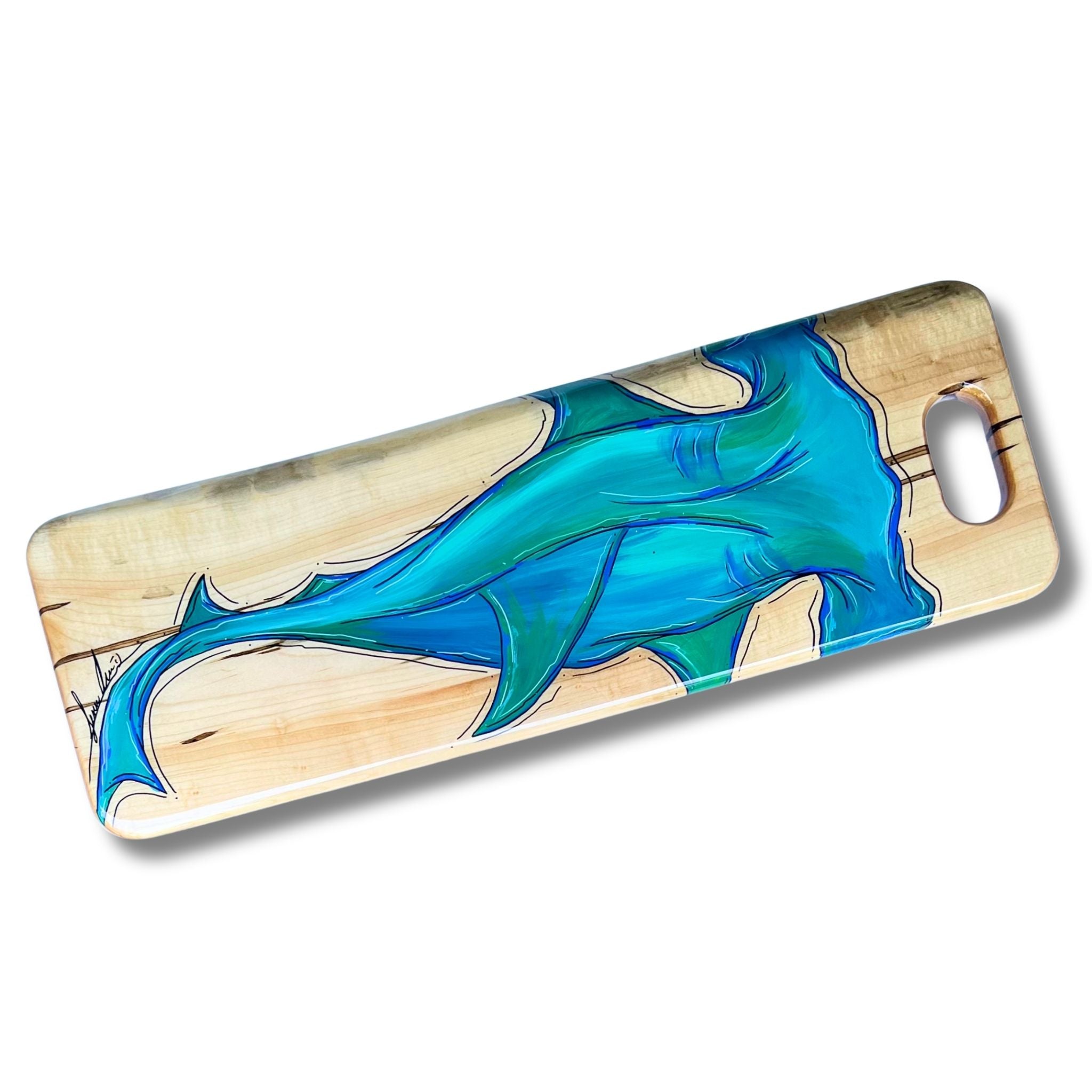 This SERVING TRAY is hand shaped, poured, and painted by hand.