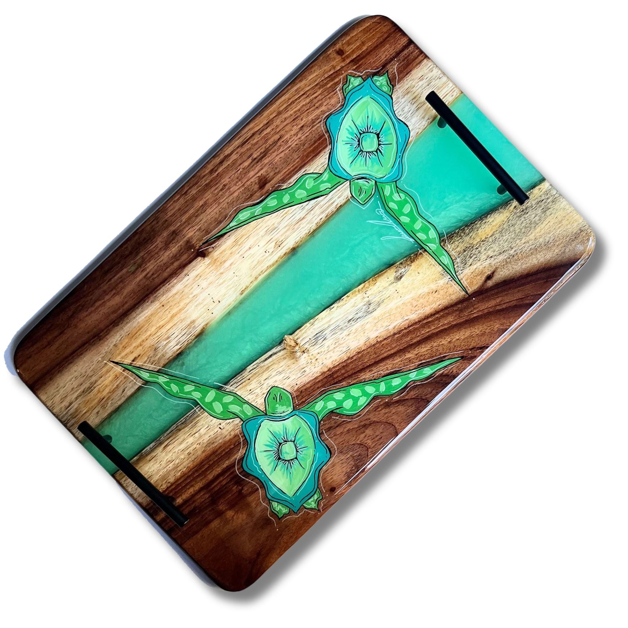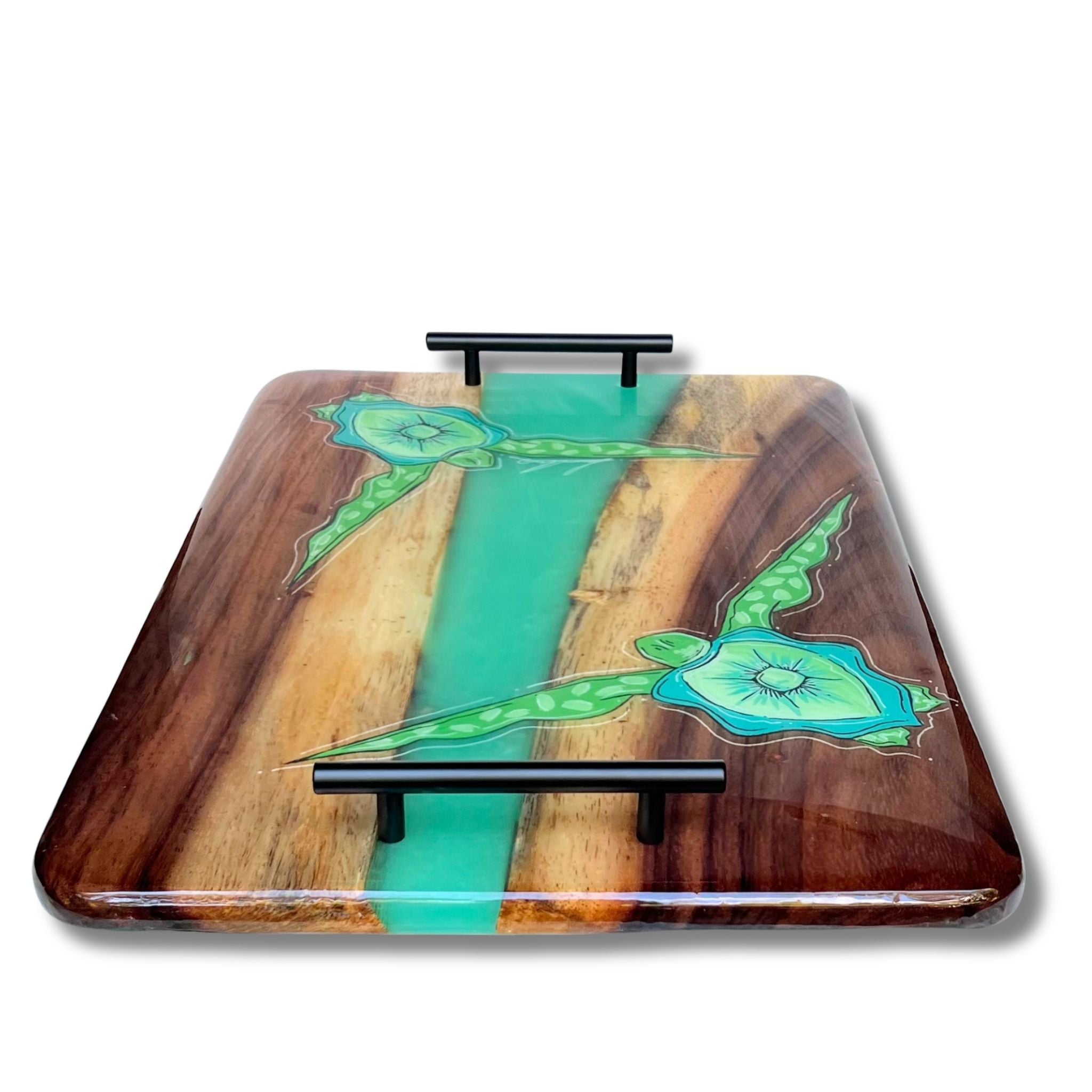 This SERVING TRAY is hand shaped, poured, and painted by hand.