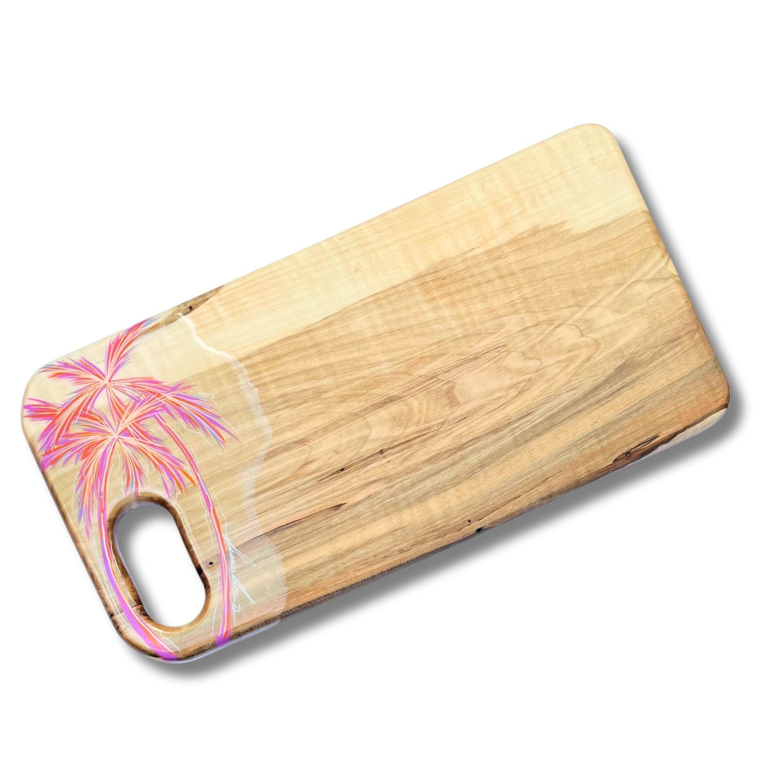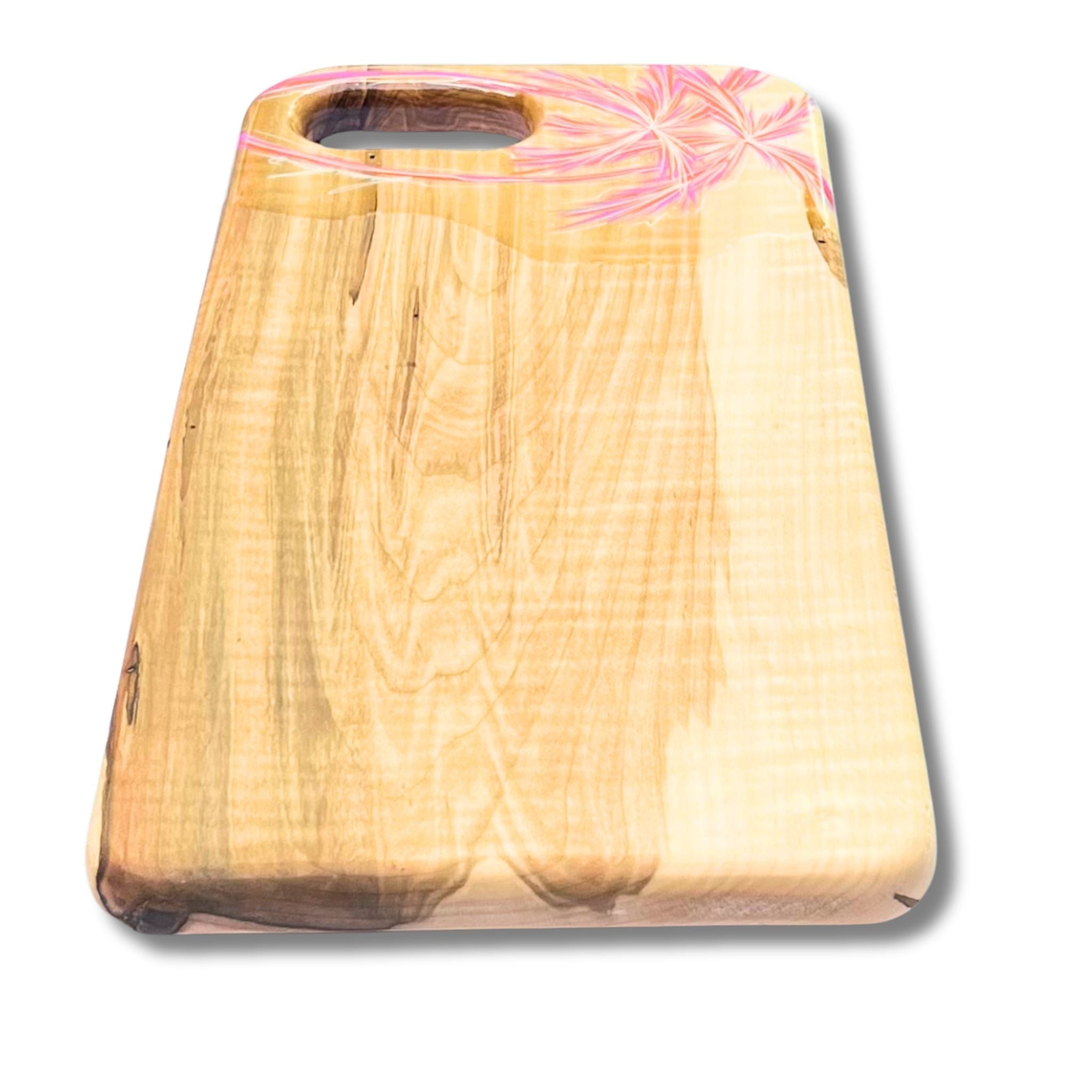 This CUTTING BOARD is hand shaped, poured, and painted by hand.