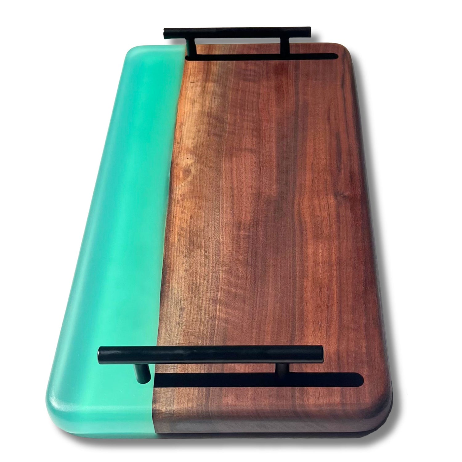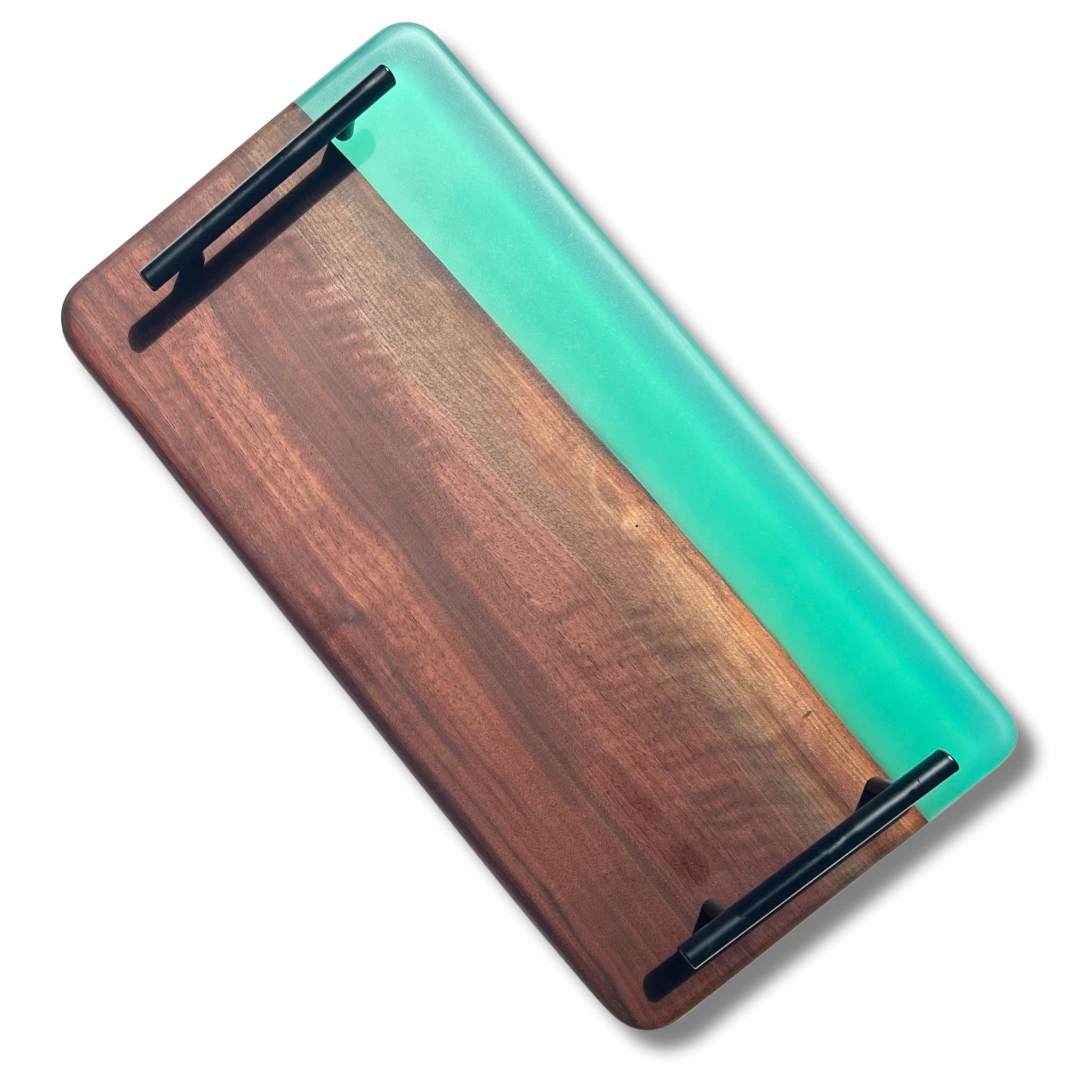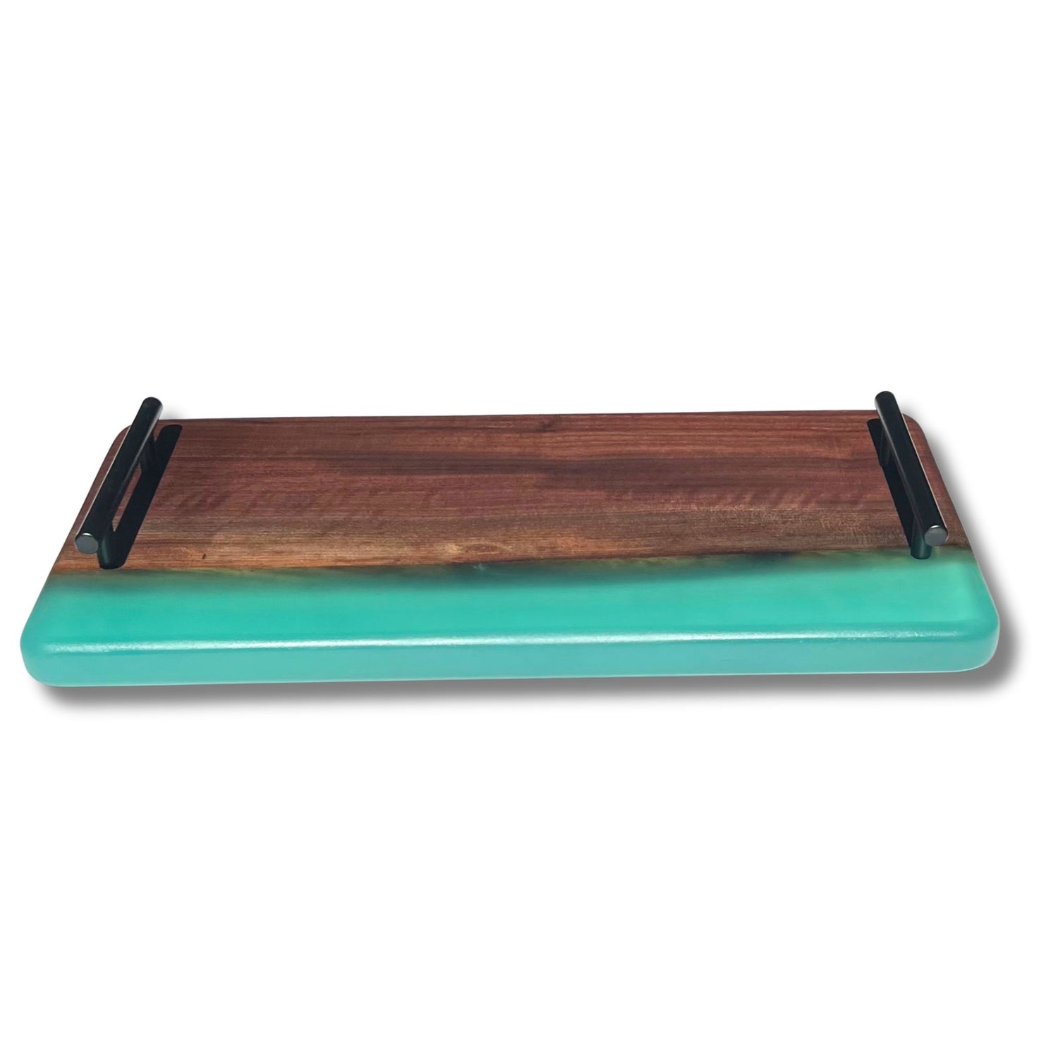 This CUTTING BOARD is hand shaped, poured, and painted by hand.