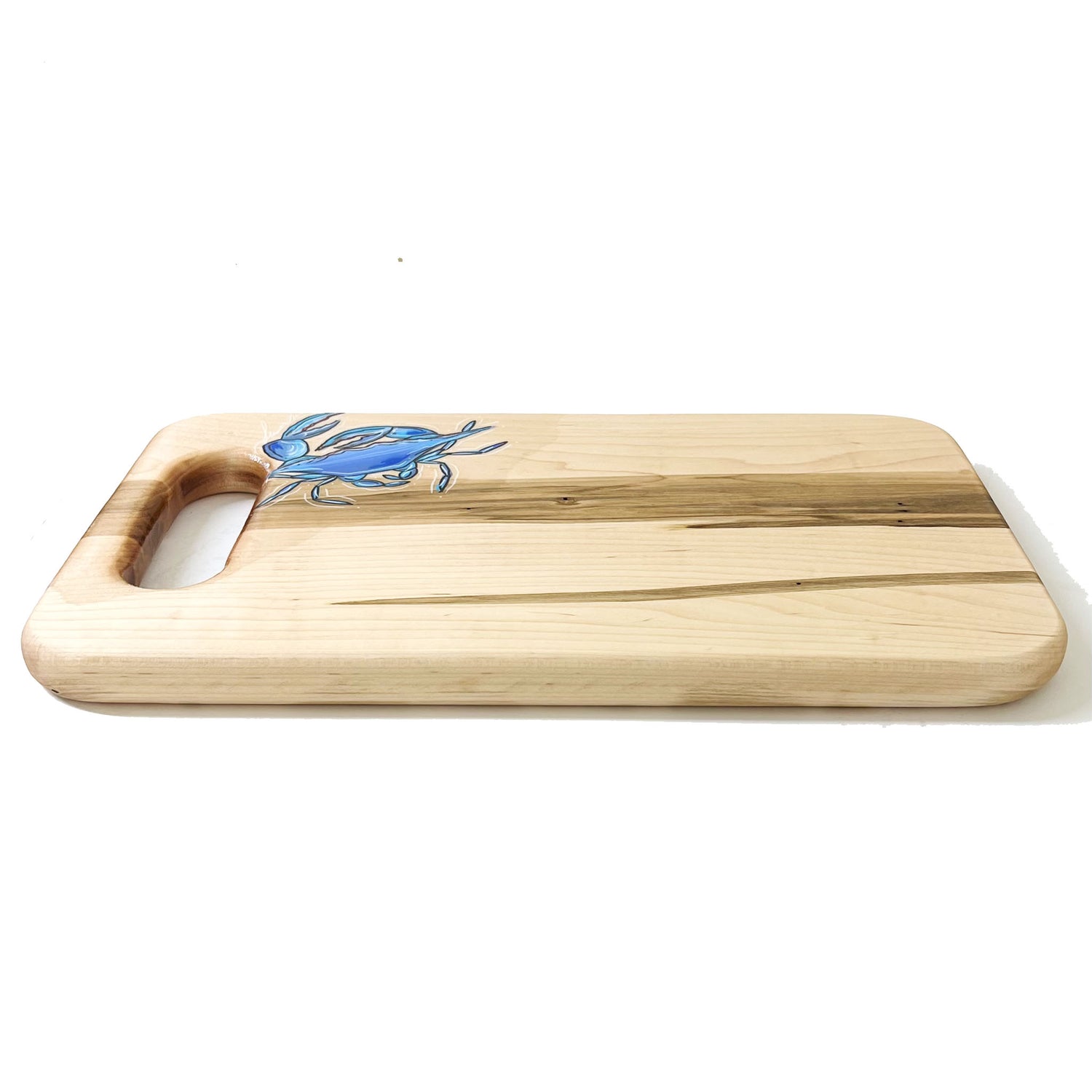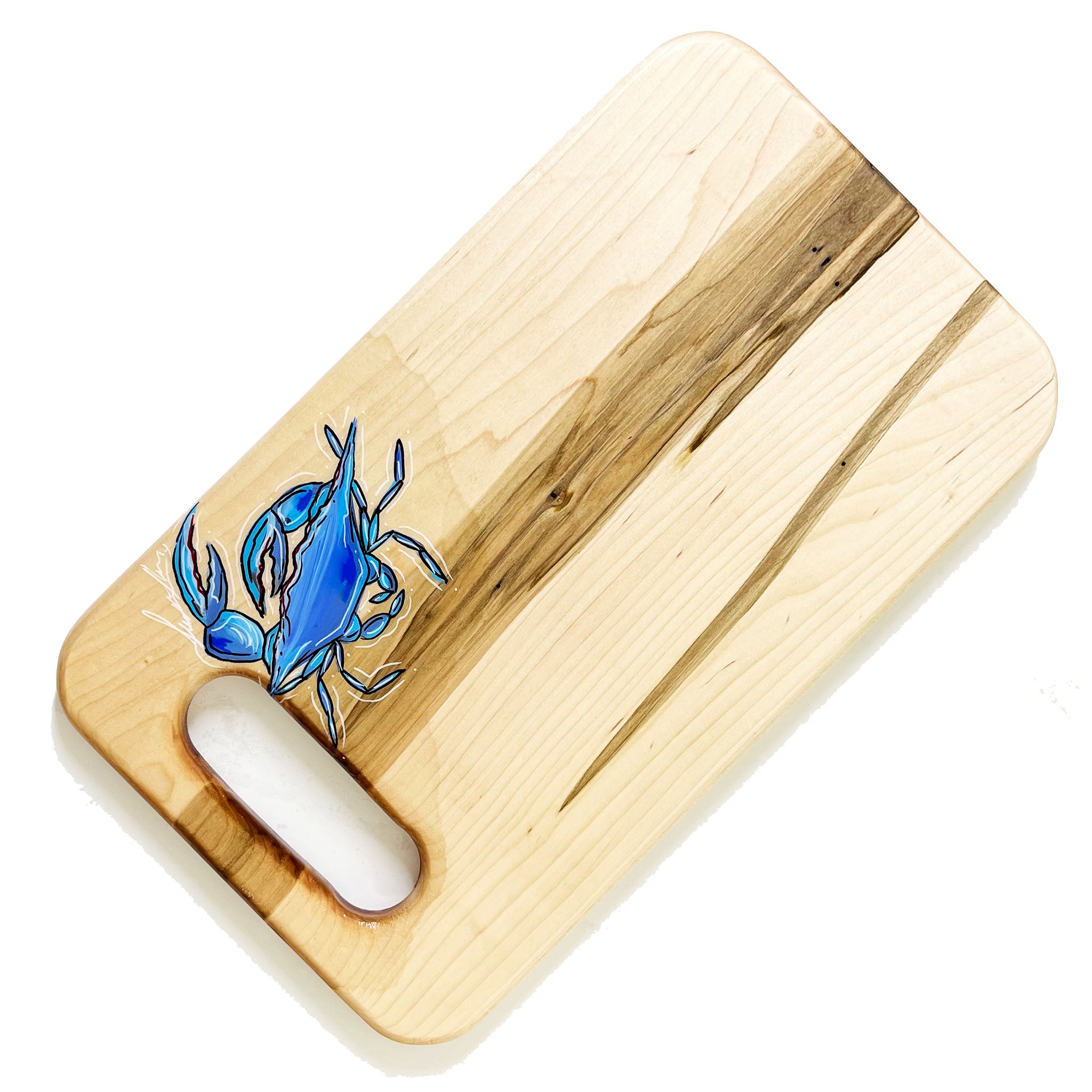 This CUTTING BOARD is hand shaped, poured, and painted by hand.