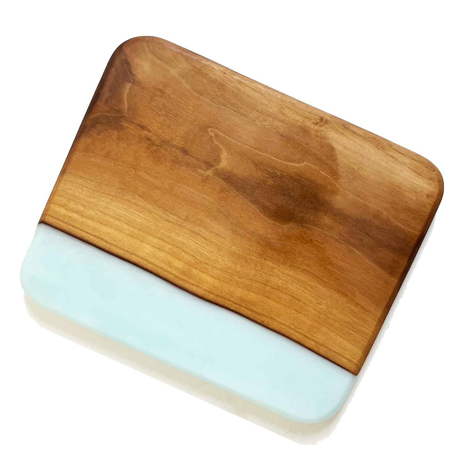 Our CUTTING BOARDS have a partial coat of epoxy finish. Our epoxy is all food safe but we do NOT recommend cutting on the areas with the epoxy finish because the knife will scratch the epoxy. We recommend using a cutting board oil every few months to ensure your boards stay bright and strong.