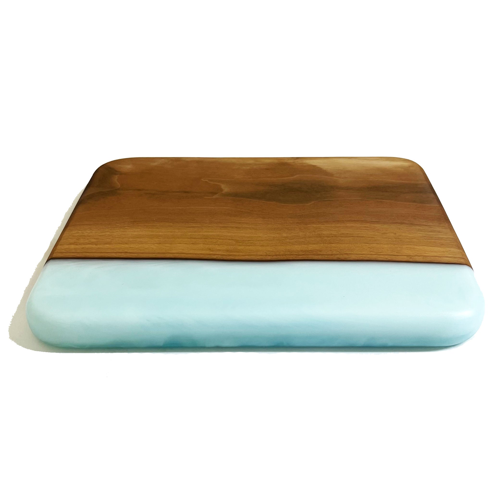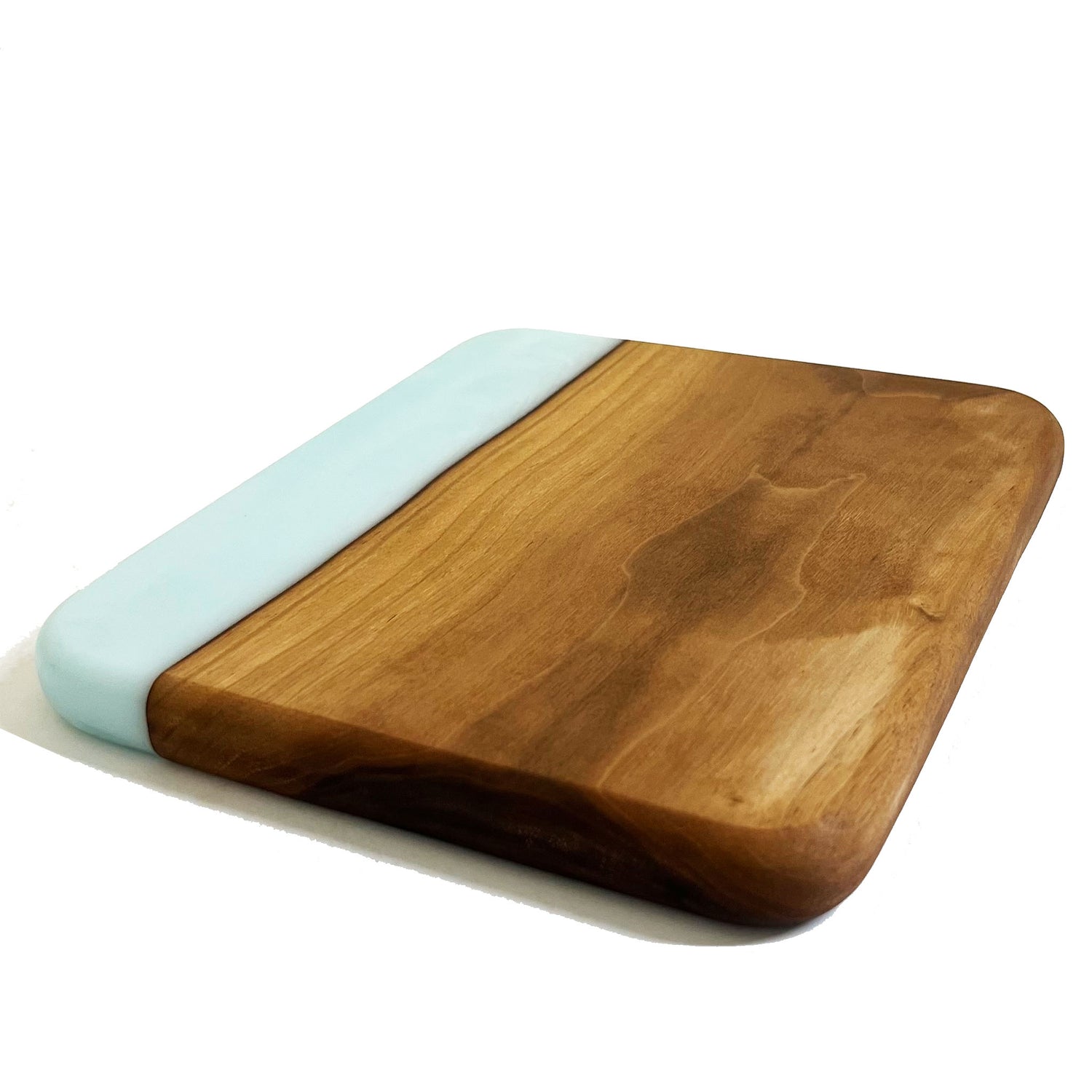This CUTTING BOARD is hand shaped, poured, and painted by hand.