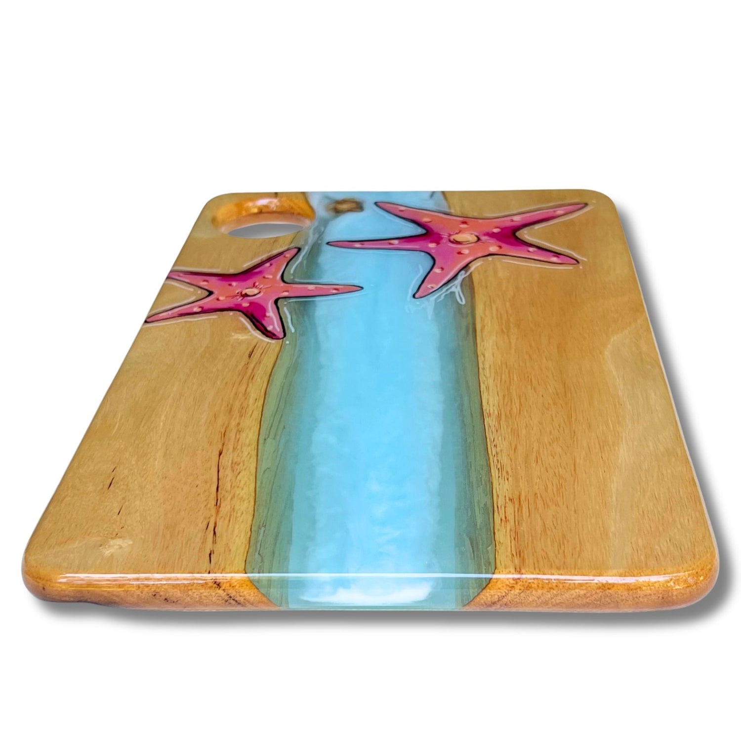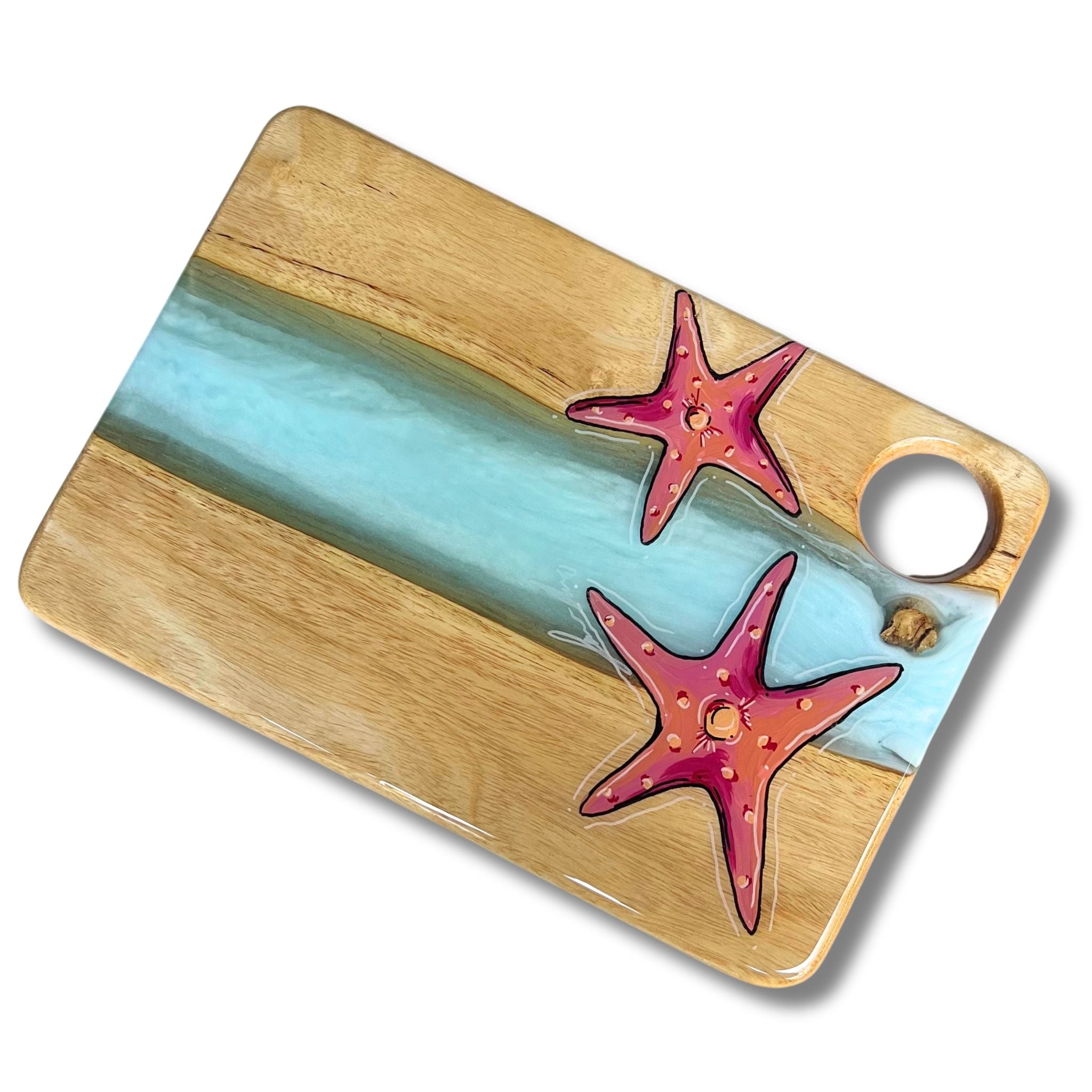 Our SERVING TRAYS have a full coat of epoxy finish. Our epoxy is all food safe but we do NOT recommend cutting on our SERVING TRAYS because the knife will scratch the epoxy finish.