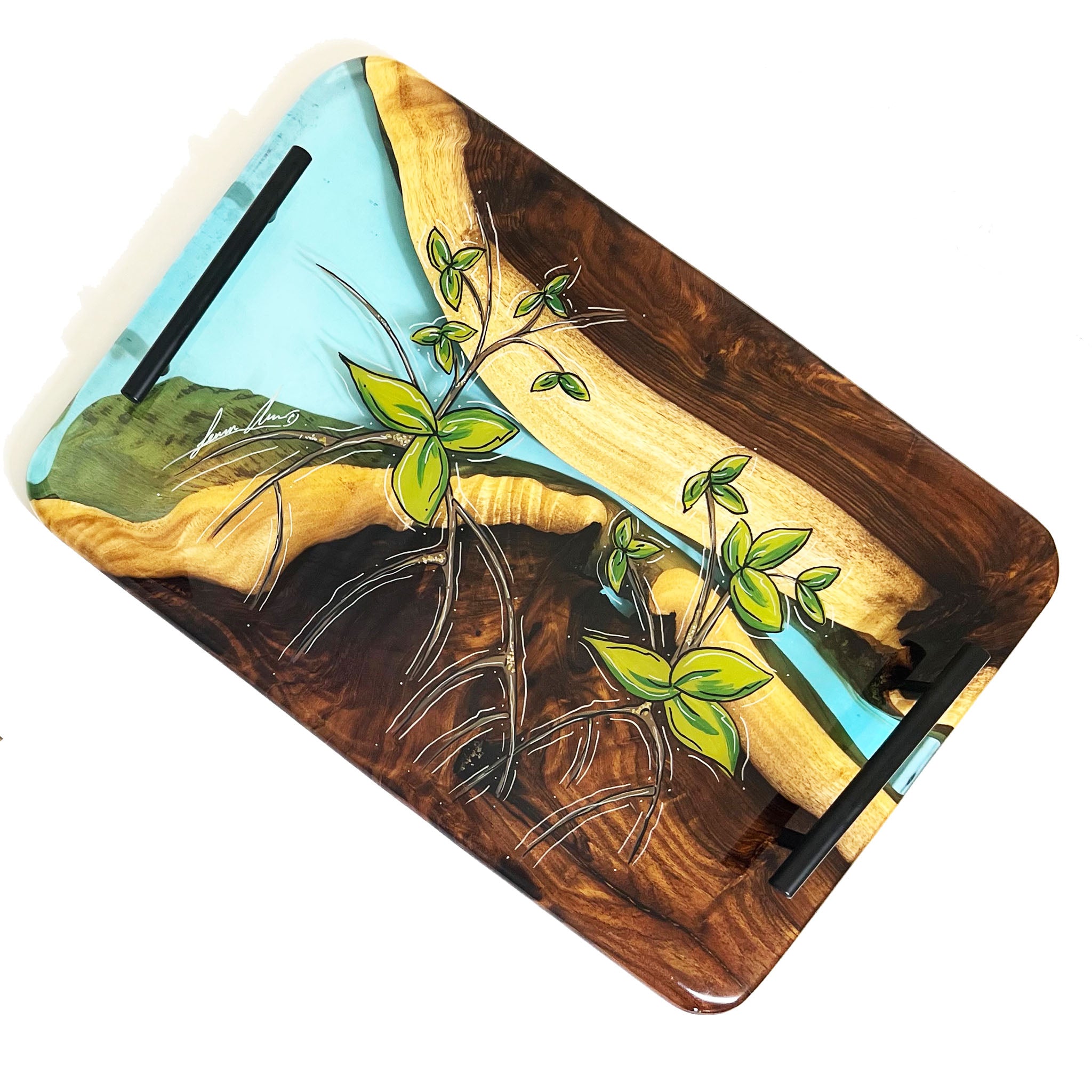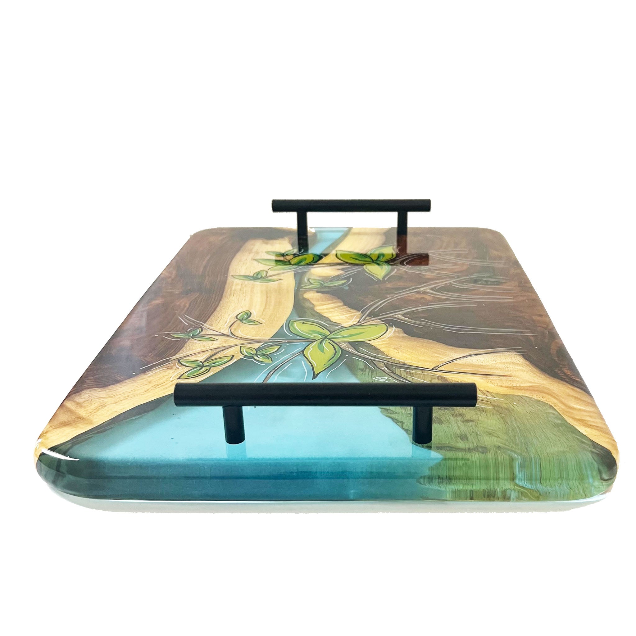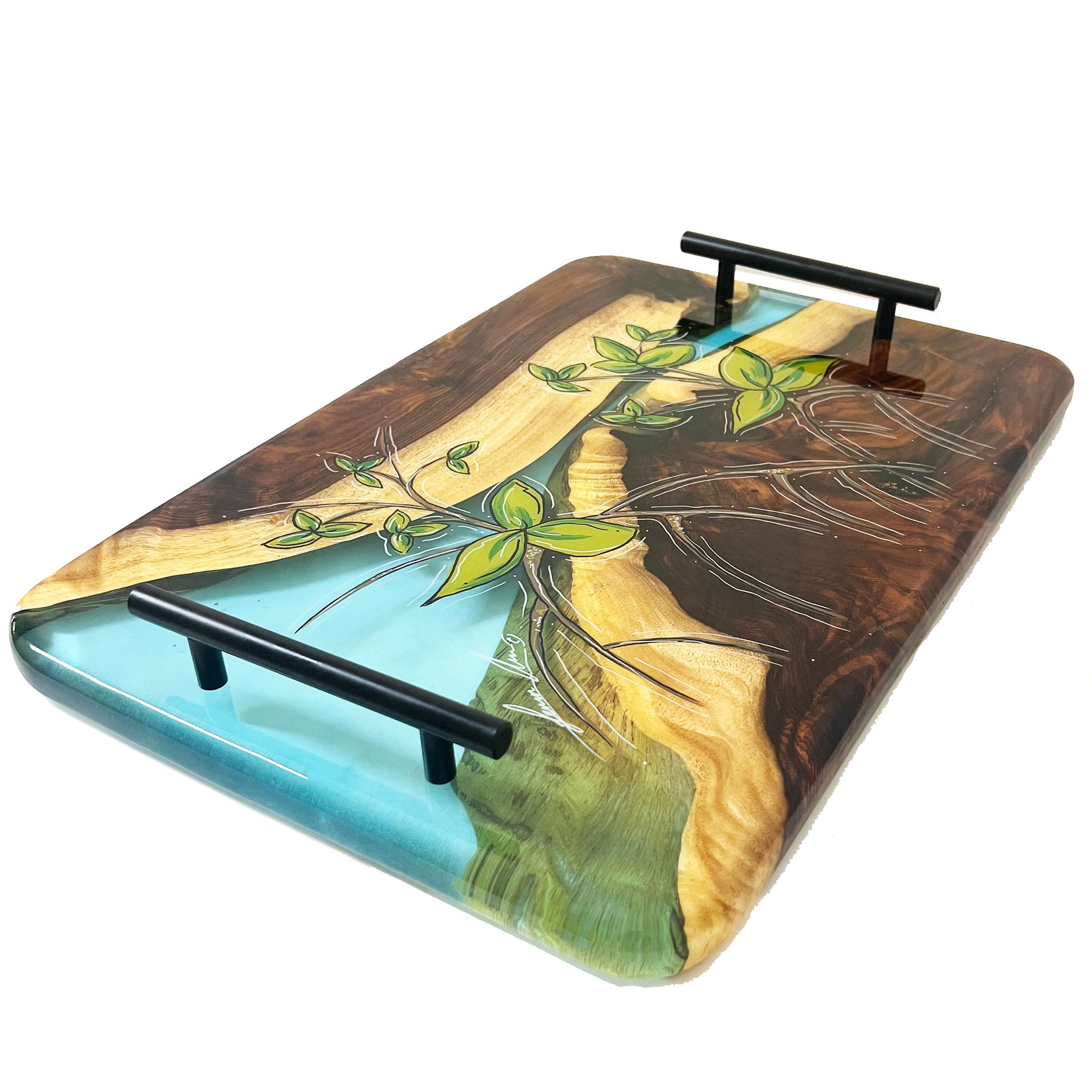 This SERVING TRAY is hand shaped, poured, and painted by hand.