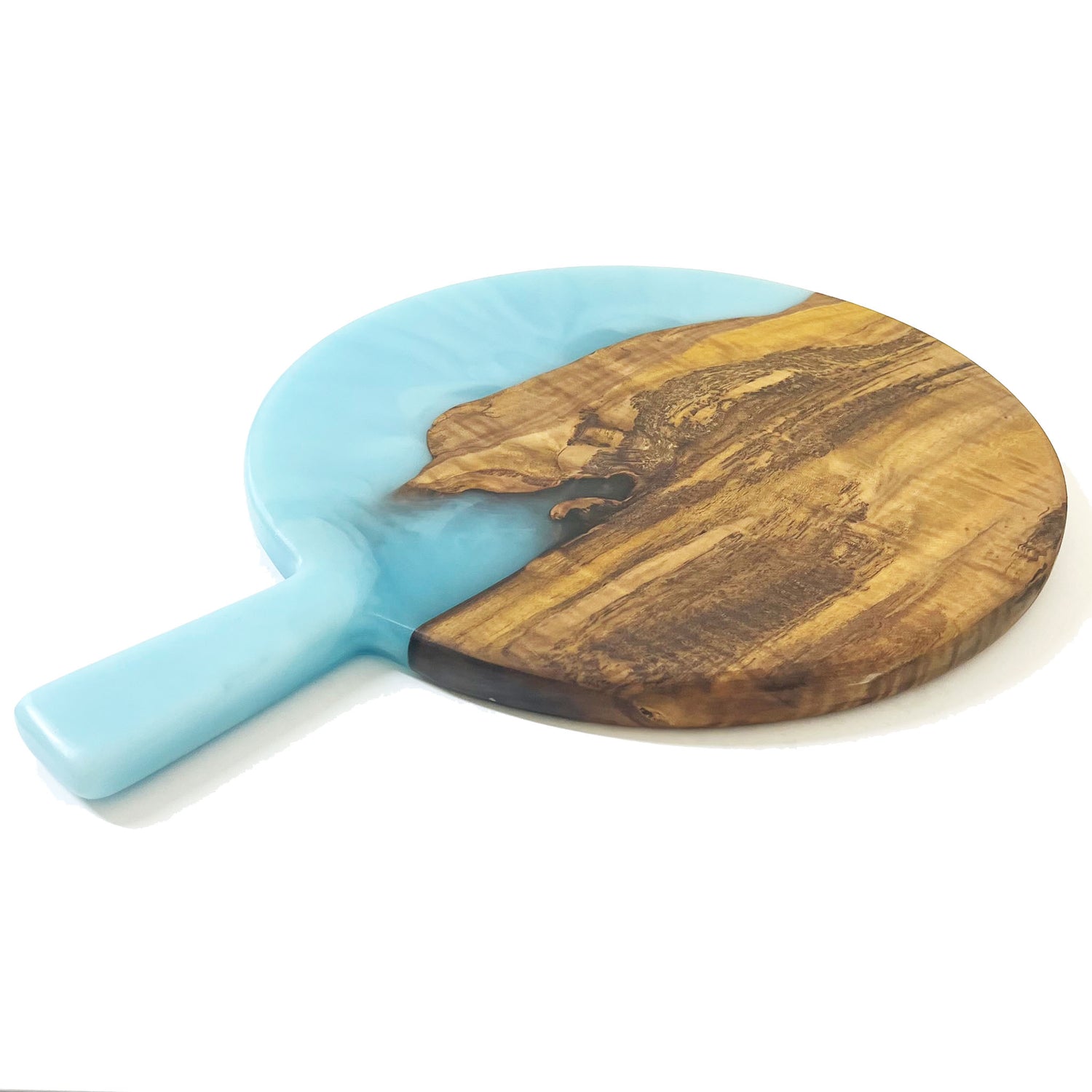 Our CUTTING BOARDS have a partial coat of epoxy finish. Our epoxy is all food safe but we do NOT recommend cutting on the areas with the epoxy finish because the knife will scratch the epoxy. We recommend using a cutting board oil every few months to ensure your boards stay bright and strong.