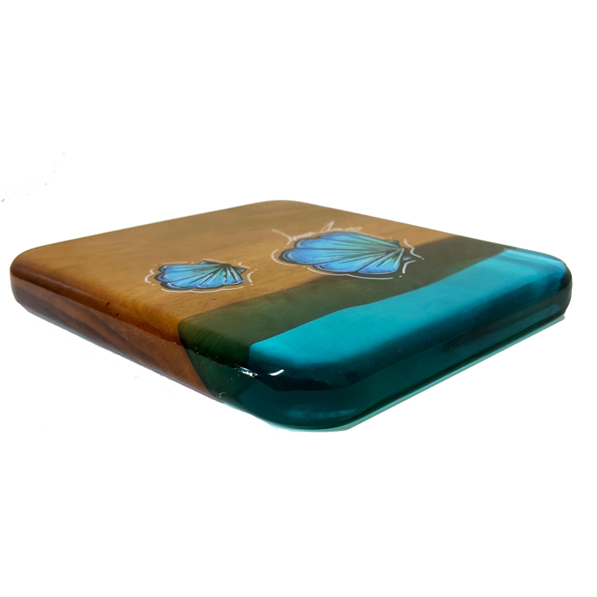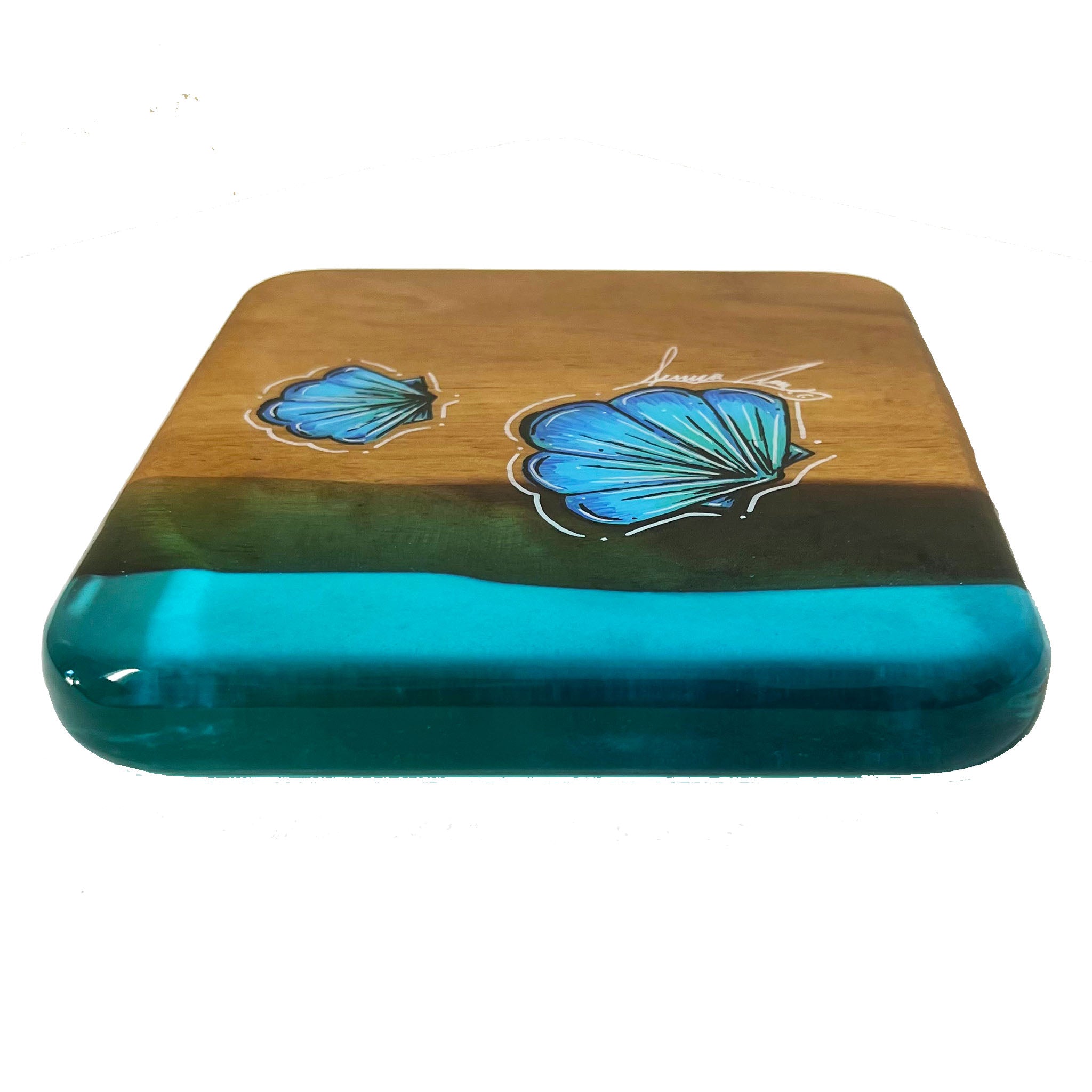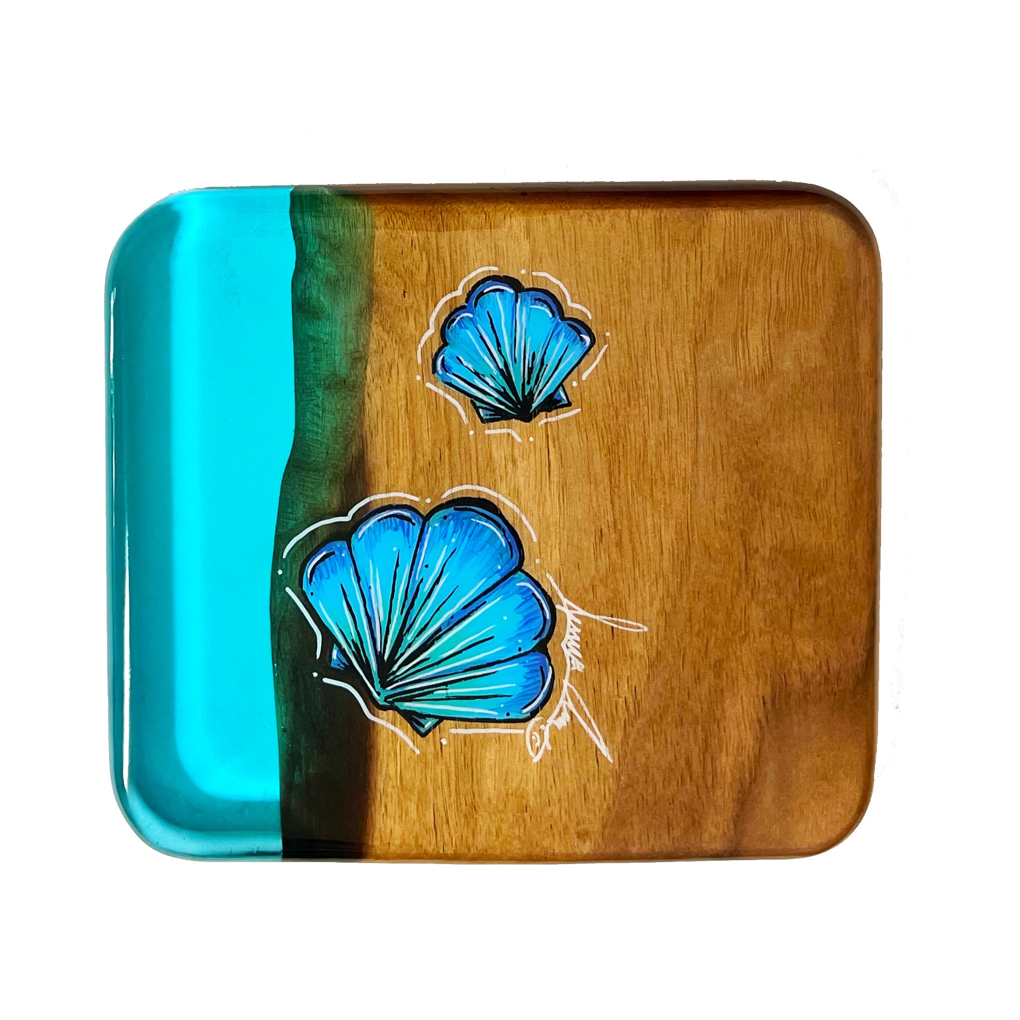 This SERVING TRAY is hand shaped, poured, and painted by hand.