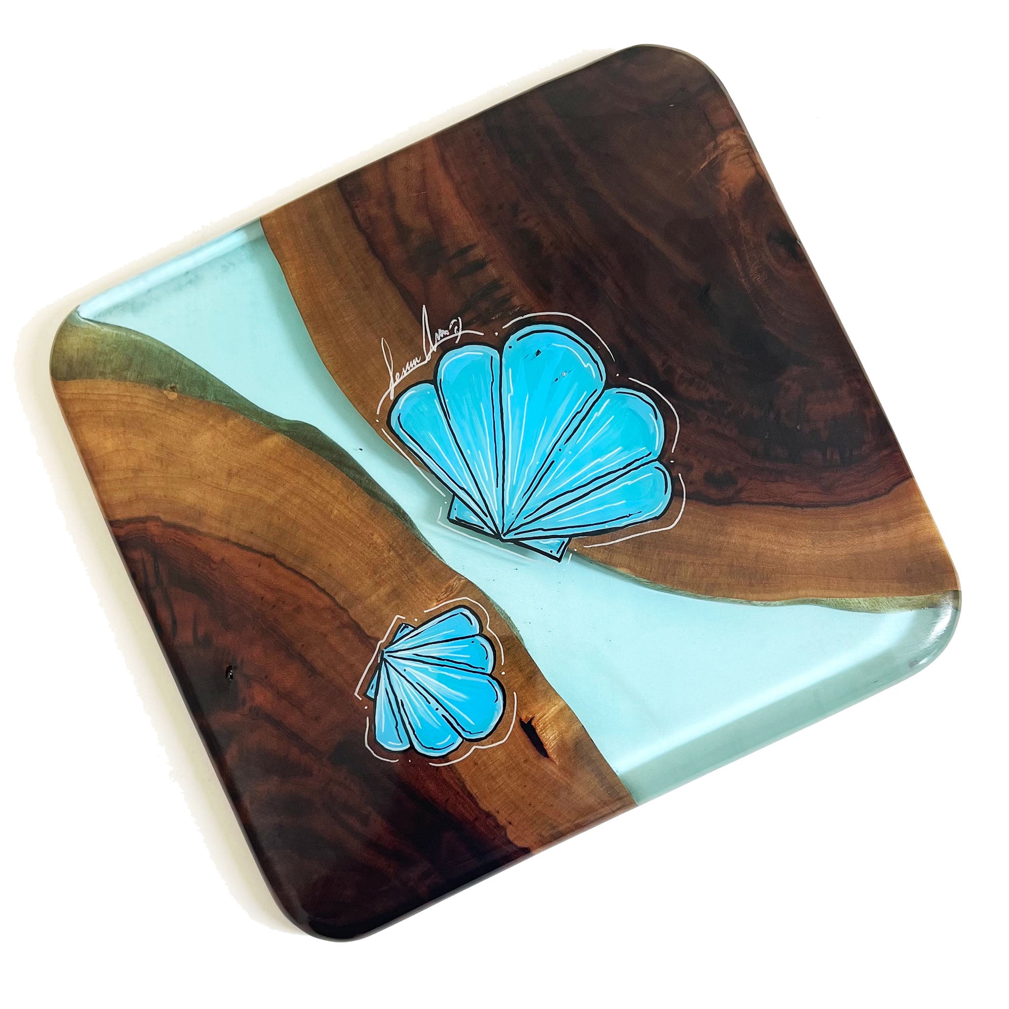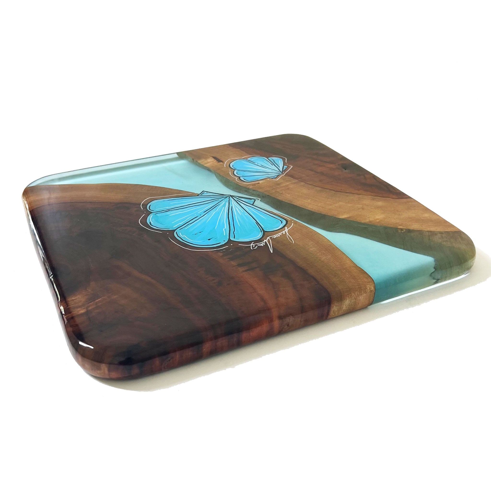 This SERVING TRAY is hand shaped, poured, and painted by hand.