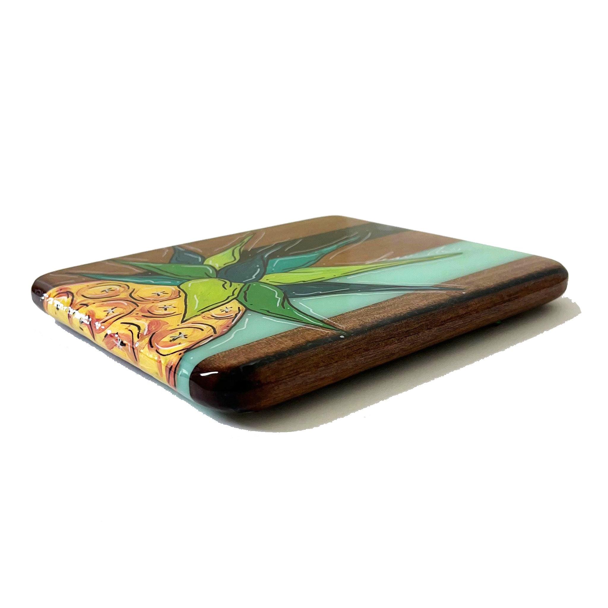 Our SERVING TRAYS have a full coat of epoxy finish. Our epoxy is all food safe but we do NOT recommend cutting on our SERVING TRAYS because the knife will scratch the epoxy finish.