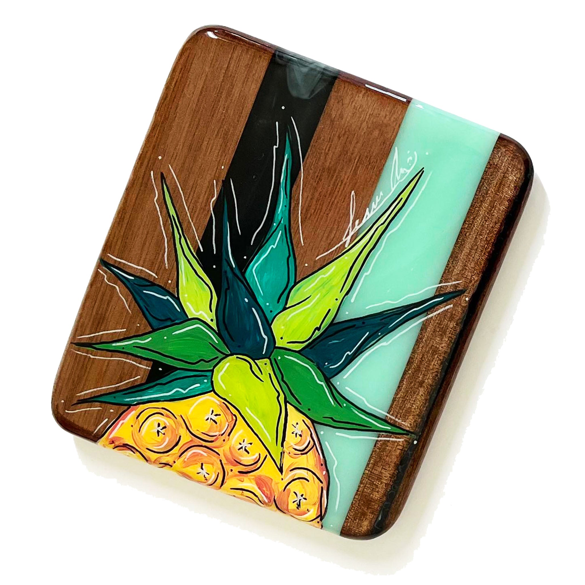 This SERVING TRAY is hand shaped, poured, and painted by hand.