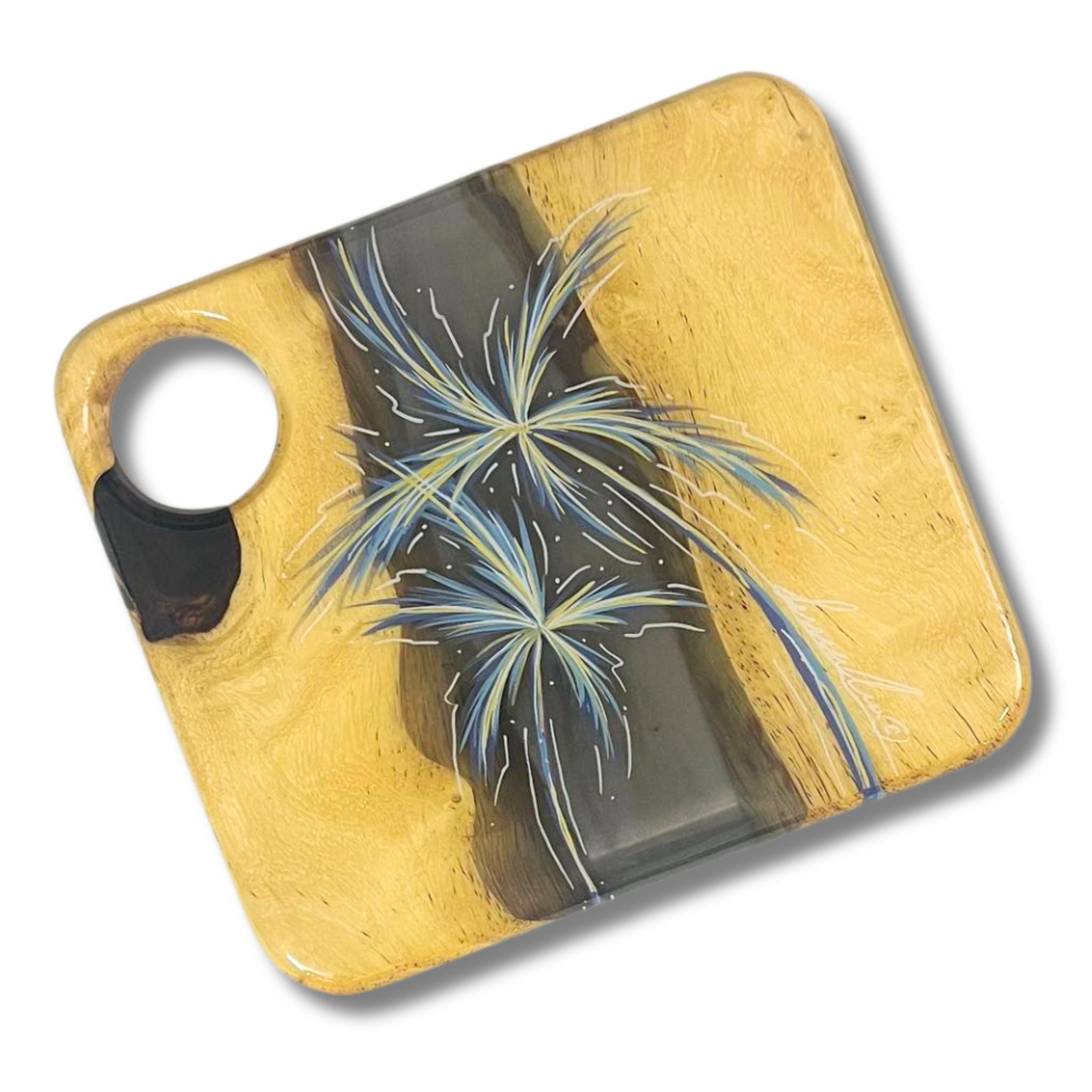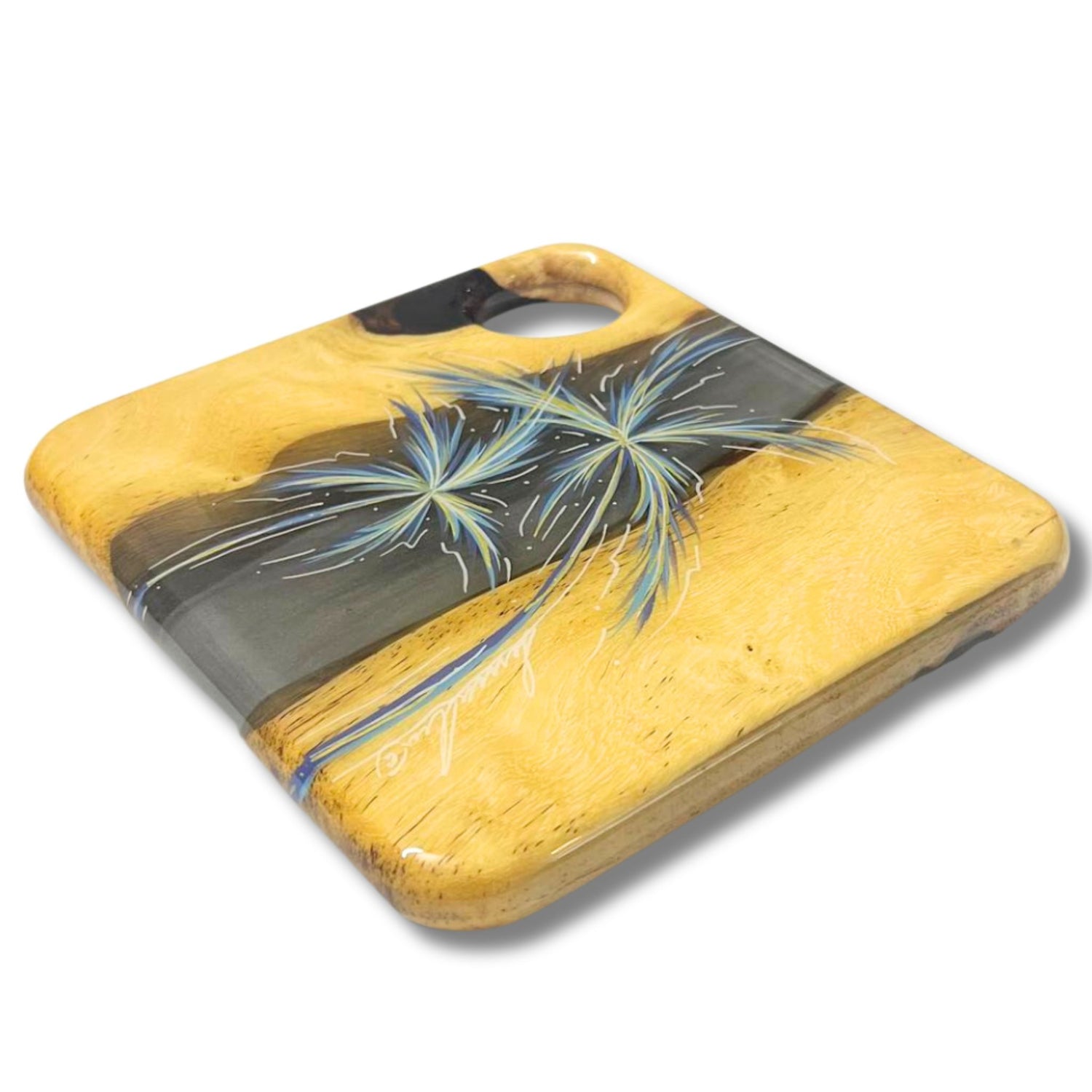 This SERVING TRAY is hand shaped, poured, and painted by hand.