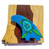 Each fin is mounted on to oiled live edge wood and finished with a hanger on back.