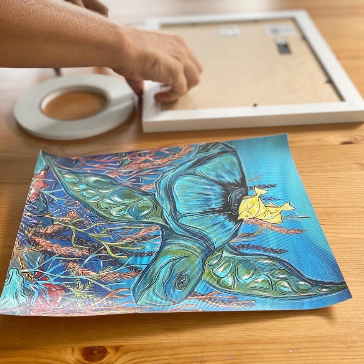 Choose a flat canvas print from the PRINT SHOP and a frame of your choice that fits your print with a mat.