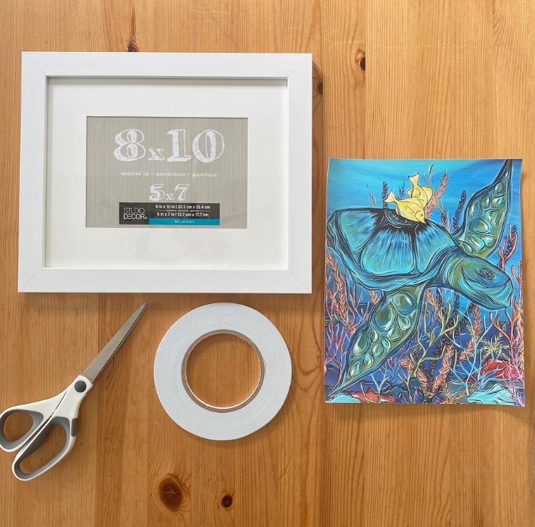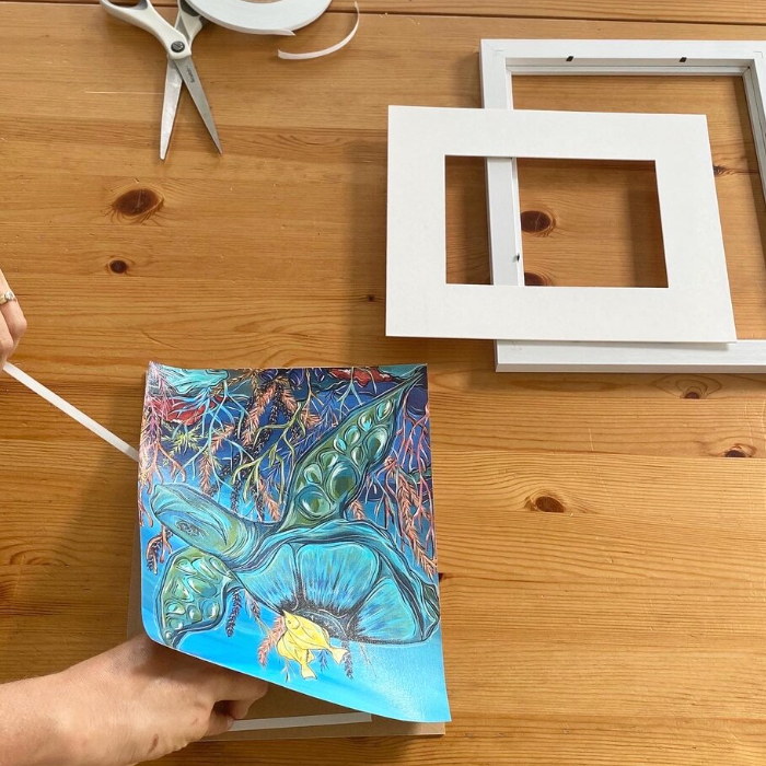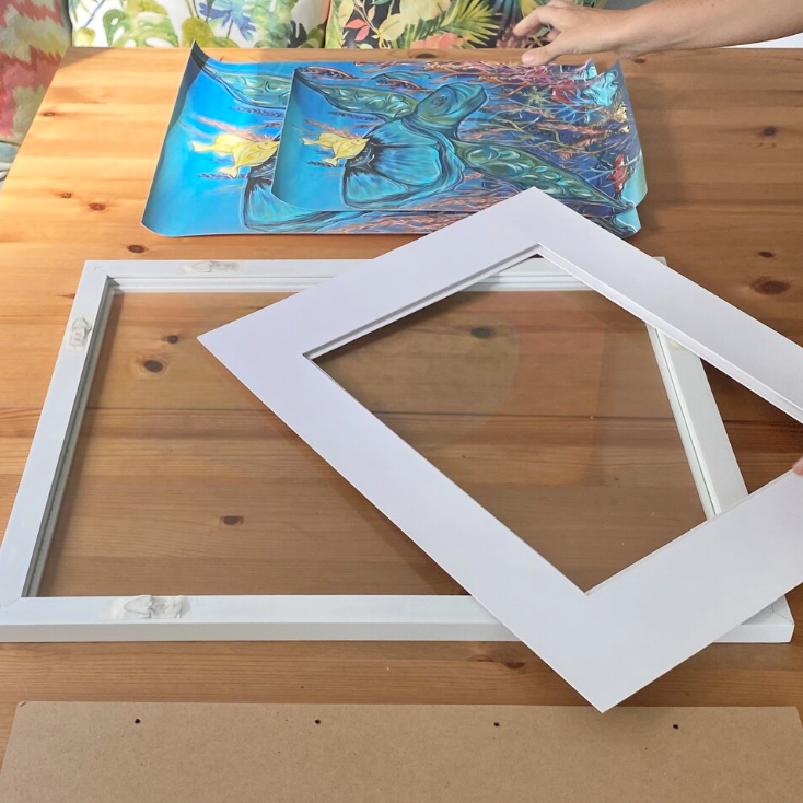 Choose a flat canvas print from the PRINT SHOP and a frame of your choice that fits your print with a mat. In this example I am using s small frame with a small mat included
