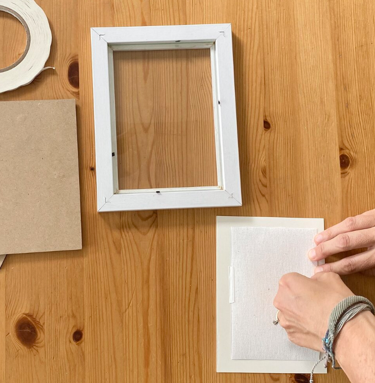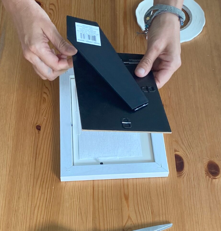 Apply strips of the tape to all 4 sides of the frame backing.