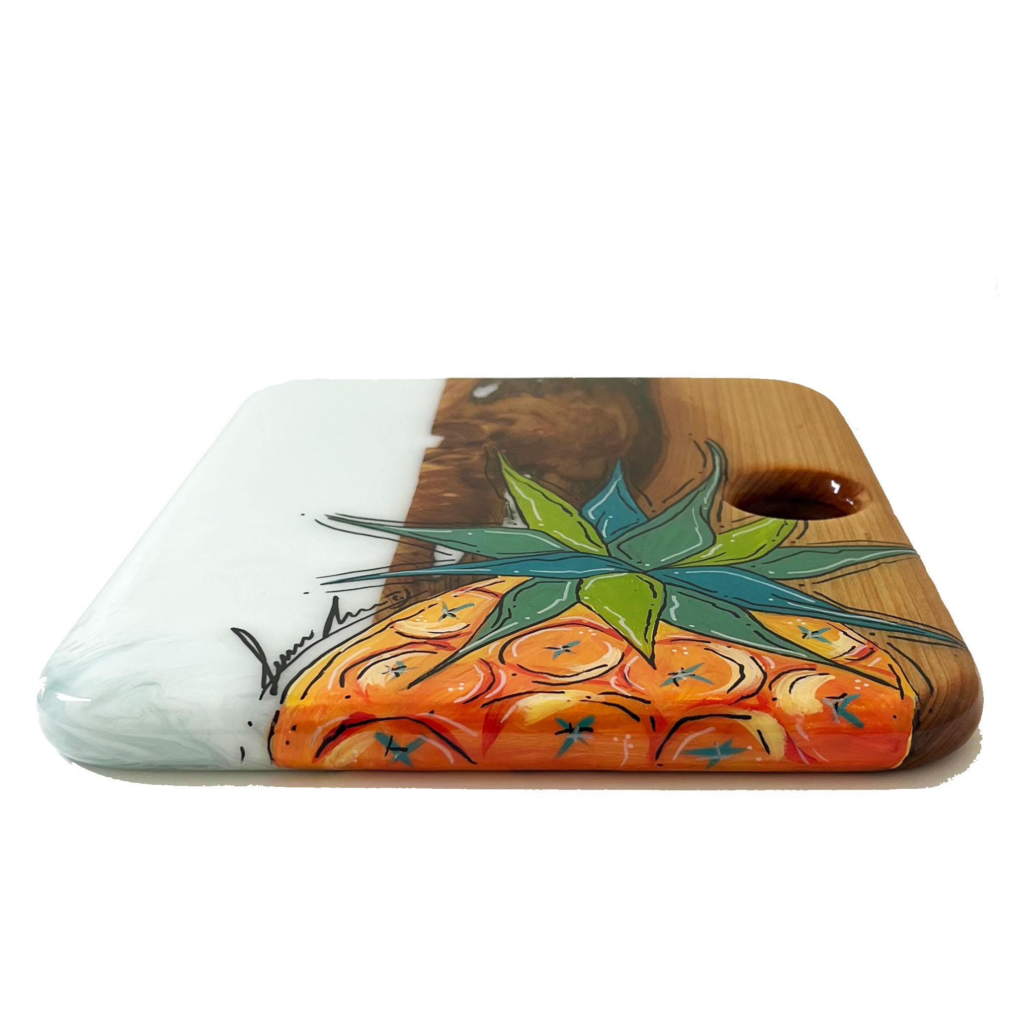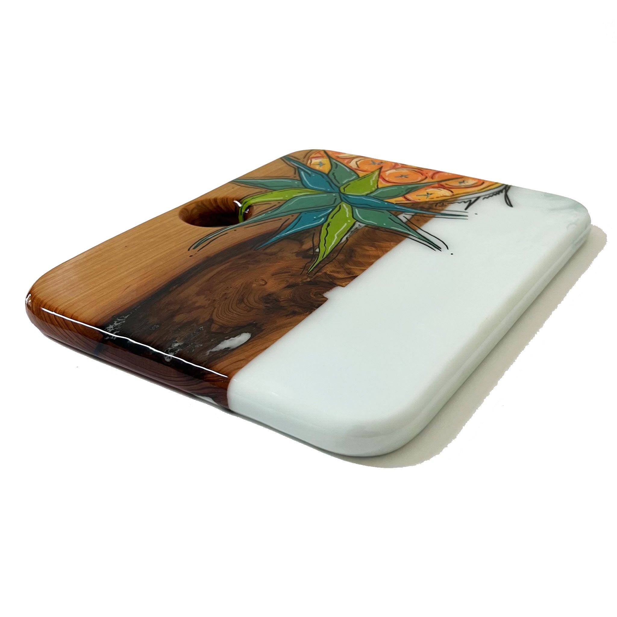 This SERVING TRAY is hand shaped, poured, and painted by hand.